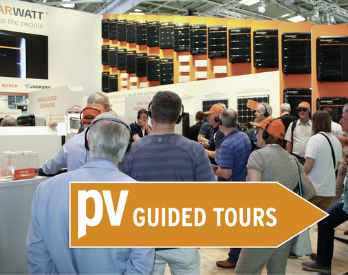 Die themenbezogenen Rundgänge werden in deutscher und englischer Sprache angeboten. Start ist am Messestand der photovoltaik und PV Europe (Halle B1, Stand 209). Die Teilnahme erfolgt nach vorheriger Anmeldung.