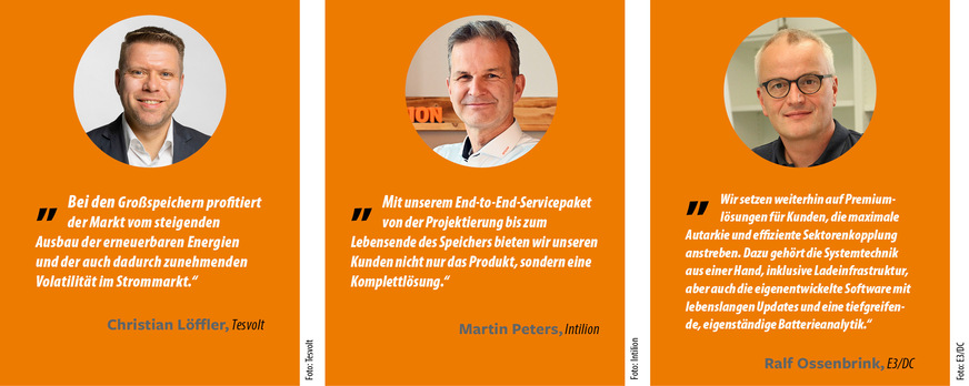 In die gleiche Richtung gehen auch andere Hersteller. „Mit unserem umfassenden Servicepaket von der Projektierung bis zum Lebensende des Speichers bieten wir unseren Kunden nicht nur das Produkt, sondern eine Komplettlösung an“, sagt Martin Peters, Produktmanager bei Intilion. „Je nach Anwendungsfall konzeptionieren wir für unsere Kunden passgenaue Lösungen inklusive Auslegung des Batteriesystems, der Umrichter, der Transformatoren und der Schaltanlagen und übernehmen die Installation und Inbetriebnahme. Ist das System installiert, überwachen wir die Anlagen per Cloud-Management-System und garantieren mit vorbeugenden Wartungen einen zuverlässigen Betrieb.“