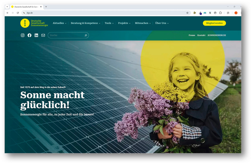 Im Jubiläumsjahr präsentiert sich die DGS in neuem Gewand. Die Website, das Logo, der Newsletter und das Fachmagazin „Sonnenenergie“ erhielten eine frische Optik, um neue und junge Mitstreiterinnen und Mitstreiter zu gewinnen.