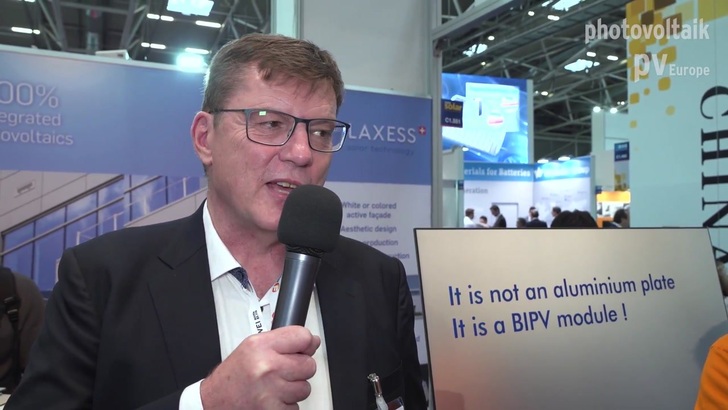 Solaxess aus der Schweiz stellte zur PV Guided Tour 2019 ein solaraktives Aluminiumelement für die Fassadenintegration vor.