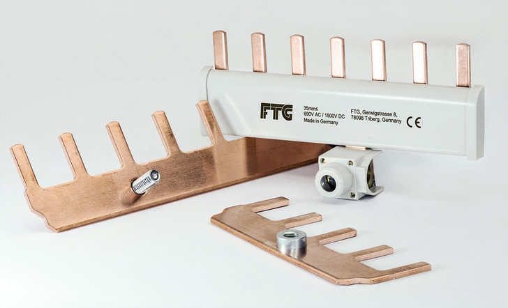 In Verteilern von Photovoltaikanlagen ist die schnelle Verdrahtung einer Vielzahl an Sicherungen erforderlich. Zugleich sollte die Lösung leistungsstark und kostengünstig sein. Der Hersteller FTG aus Triberg bietet nun auch preisgünstige Varianten an. Denn platzsparende Phasenschienen für den DC-Bereich sind gefragt. Voraussetzungen im Solarbereich sind eine maximale Betriebsspannung von 1.500 Volt DC für einpolige Phasenschienen und 1.000 Volt DC bei zweipoligen Phasenschienen.