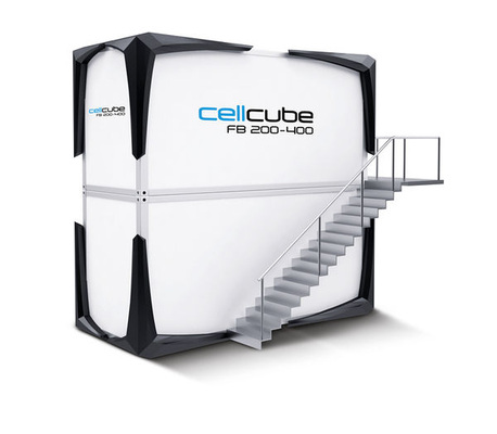 Gildemeister präsentiert seinen neuen Cell Cube Energiespeicher, der auf Vanadium-Redox-Flow-Technologie basiert. Die kleinere Ausführung Cell Cube FB 30-130 verfügt über eine Leistung von 30 Kilowatt und eine Kapazität von 130 Kilowattstunden. Der Cell Cube FB 200-400 mit 200 Kilowatt Leistung und 400 Kilowattstunden Kapazität stellt umfangreichere Energiereserven bereit und bietet sich daher für industrielle Anwendungen an. Das größere Gerät besteht aus einem Leistungs- und einem Energieteil. Das Leistungsteil umfasst die Stacks, den Flow Battery Controller, den DC/DC-Wandler sowie den Wechselrichter, während das Energieteil die beiden Tanks für negativ und positiv geladenes Elektrolyt sowie die Pumpensysteme für den Flüssigkeitskreislauf bereithält. Aufgrund seiner hohen Leistung lässt sich der Cell Cube FB 200-400 gezielt zur Stabilisierung von Niederspannungs- und Mittelspannungsnetzen einsetzen, als Energiereserve oder zum Ausgleich von Last- und Erzeugungsspitzen.