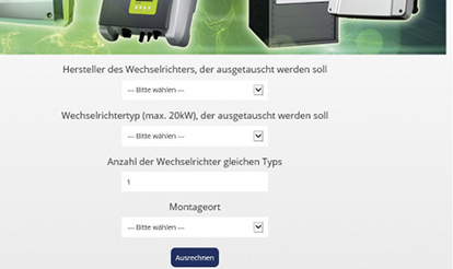 Das neue Programm Repower Check von Kostal Solar vereinfacht künftig den Tausch von Wechselrichtern. Anstatt den Austausch wie bisher aufgrund der vorhandenen Module zu berechnen, geht das von PV-SOS programmierte Tool nur von dem zu ersetzenden Wechselrichter aus. Es werden lediglich Hersteller und Typ des zu tauschenden Wechselrichters sowie Anzahl und Montageort ins neue Tool eingegeben.