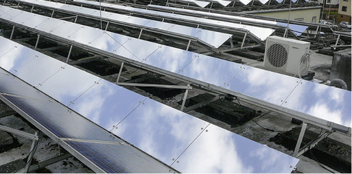 Mit der patentierten Entwicklung der Firma Plusampere lässt sich die Leistungsausbeute von Photovoltaikanlagen steigern. Um die einfallende Solarstrahlung auf die Solarmodule zu spiegeln, werden die Reflektoren zwischen den in Reihe aufgeständerten Modulen installiert. Unter Praxisbedingungen wurde an einer Referenzanlage im Südwesten Deutschlands im Jahresdurchschnitt eine Ertragssteigerung von 14 Prozent erzielt, teilte das Unternehmen aus Kaiserslautern mit. Um diesen Mehrertrag transparent nachweisen zu können, wurden nur Module an einem von zwei Wechselrichtereingängen mit Reflektoren bestückt.