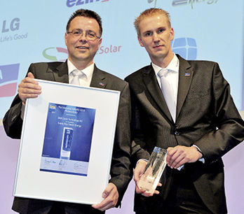 Die SMA Solar Technology AG hat auf der Intersolar in München den Intersolar Award erhalten. Die Jury zeichnete den Sunny Boy Smart Energy von SMA als bestes Produkt in der Kategorie Photovoltaik aus. Der erste wandmontierbare Wechselrichter mit integriertem Speicher von LG Chem kann den Eigenverbrauch von Solarstrom in Privathaushalten um bis zu 50 Prozent erhöhen. „Als Kombination aus Batterie, moderner Leistungselektronik und intelligenter Regelung verleiht der Sunny Boy Smart Energy auch kleinen Solaranlagen die Eigenschaften von Kraftwerken“, sagt Roland Grebe, Technologievorstand von SMA. „Dazu gehören die Fähigkeit zum Schwarzstart und die Bereitstellung von Regelleistung. Er kann die stabilisierende Wirkung rotierender Massen nachbilden, zur Stabilisierung der Netzspannung beitragen und so die konventionellen Must-Run-Units Schritt für Schritt ersetzen.“