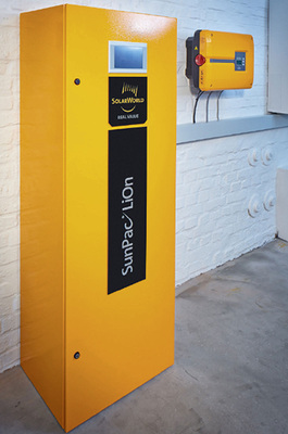 Das Bonner Unternehmen Solarworld bietet erstmals neben Blei-Gel-Speichern auch ein Batteriesystem mit Lithium-Eisenphosphat-Batterie an. Das neue System Sunpac Lion bietet Speicherkapazitäten von fünf und zehn Kilowattstunden. Das AC-gekoppelte System eignet sich auch für die Nachrüstung von Bestandsanlagen.