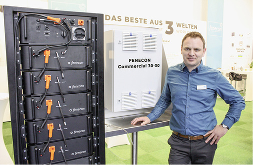 Zur Speichermesse EES Europe in München stellte das Unternehmen von Franz-Josef Feilmeier unter anderem den neuen Gewerbespeicher Commercial 30/30 vor. Der Hochvoltspeicher kann mit 1C entladen (30 Kilowatt). „Das ist ein interessanter Puffer für die E-Mobilität, um die Spitzenleistung am Stromnetz zu begrenzen“, meint Franz-Josef Feilmeier. „Damit haben wir eine Standardlösung geschnürt, die alle Wünsche abdeckt, bis hin zur Abrechnung.“ In München war auch die Serie Fenecon Commercial 50 zu sehen, ab 50 Kilowatt Leistung und ab 60 Kilowatt Batteriekapazität aufwärts. (HS)