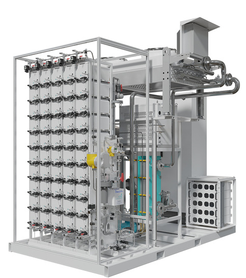Der deutsch-italienische Hersteller Enapter erweitert das Portfolio um den AEM Flex 120. Dabei handelt es sich um einen sogenannten AEM-Elektrolyseur, der den schnellen Bau von H2-Pilotprojekten in Industrie und Betankungsbranche ermöglicht. Das System verfügt über bis zu 50 AEM-Stack-Module und gewährleistet damit eine flexible Betriebsweise und eine schnelle Reaktionsfähigkeit auf schwankende Lasten aus Ökoenergien.