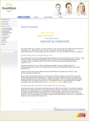 In den großen Photovoltaikunternehmen ist die Personalsuche per Internet mittlerweile üblich. Dies zeigen Stellenanzeigen auf den Websites, außerdem bestätigen es Personalverantwortliche zum Beispiel von Solarworld, Phoenix Solar und Schott Solar. Soziale Netzwerke gehören allerdings noch nicht zu den Medien, die regelmäßig genutzt werden. So berichtet beispielsweise Katrin Birner, Pressesprecherin bei IBC Solar, dass der Systemanbieter je nach vakanter Position unterscheidet. Sind beispielsweise Stellen in der Auftragsabwicklung oder Buchhaltung zu besetzen, schaltet IBC Solar in Regionalzeitungen Anzeigen. Zusätzlich inseriert IBC Solar in Jobbörsen und sucht auf passenden Plattformen wie Horizont.net und Salesjob.de. Für Positionen, die ein sehr differenziertes Spezialwissen erfordern, beauftragt das Unternehmen Headhunter. „Mit diesen Methoden zur Bewerbersuche und -auswahl haben wir bislang sehr gute Erfolge. In der aktuellen wirtschaftlichen Situation, die auch und gerade unsere Region getroffen hat, erhalten wir zahlreiche Bewerbungen, teilweise mehr als 100 pro Tag“, sagt Katrin Birner. „Zusätzlich Social-Media-Angebote zu nutzen, würde für uns vor allem einen hohen Zeitaufwand mit vergleichsweise geringem Nutzen bedeuten.“