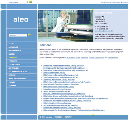 Ähnlich internetaffin ist Tom Zeller, Geschäftsleiter für den Bereich Unternehmensentwicklung bei der Enerix Alternative Energietechnik in Nittendorf bei Regensburg. „Die Bewerbungen laufen zentral auf. Per E-Mail senden wir sie an den zuständigen Fachbereichsleiter. Der sortiert sie in den passenden Ordner – nicht geeignet, einladen oder zweite Sichtung – und so geht es weiter.“ Zeller hält die Mischung von Internet und Print noch für ideal. „In Printanzeigen kann man auf Stellenausschreibungen aufmerksam machen. Im Internet gibt es dann weitere Informationen.“ Seit zwei Jahren nimmt der Planungs- und Installationsbetrieb für PV-Aufdachanlagen nur noch Online-Bewerbungen in zwei vorgegebenen Formaten an, weil es Zeit und Geld spart. Dass er damit den Kreis der möglichen Bewerber zu sehr einschränken könnte, befürchtet Zeller nicht: „Die meisten Leute nutzen das Internet, auch die, die weit über 50 Jahre alt sind.“ Dies weiß Zeller auch aus seiner vorherigen Tätigkeit. Bevor er mit zwei anderen Geschäftsleitern zusammen die Firma Enerix gründete, war er Inhaber einer Agentur für Online-Marketing. Und so erstaunt es nicht, wenn er sagt: „Wir nutzen das Internet gnadenlos. Die Website ist unser wichtigstes Instrument nach außen.“