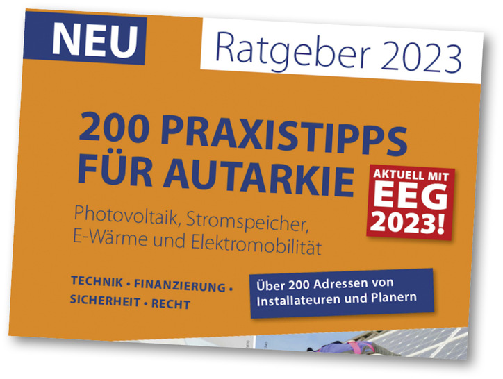 Der Ratgeber 2023 „200 Praxistipps für Autarkie“ steht online als PDF nach kurzer Registrierung zum kostenlosen Download bereit. Er wurde speziell für Privat- und Gewerbekunden entwickelt und enthält viele Tipps rund um die solare Eigenversorgung.