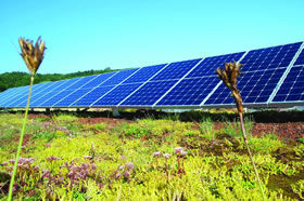 Das Unternehmen Zinco baut nicht nur Montagesysteme aufs Dach, sondern begrünt es zudem mit Pflanzen. Das kühle die Module und stabilisiere die Dachaufbauten. Begrünte Dächer sollen sich laut Zinco nur halb so stark erhitzen wie mit Kies bedeckte Dächer. Da die Pflanzen die Umgebungstemperatur durch ihre Verdunstung abkühlen, erhitzen sich begrünte Dächer nur auf 35 Grad Celsius, was den Wirkungsgrad der Photovoltaik-Module verbessere. Dächer, die mit Kies abgedeckt sind, erhitzen sich hingegen auf bis zu 65 Grad Celsius.