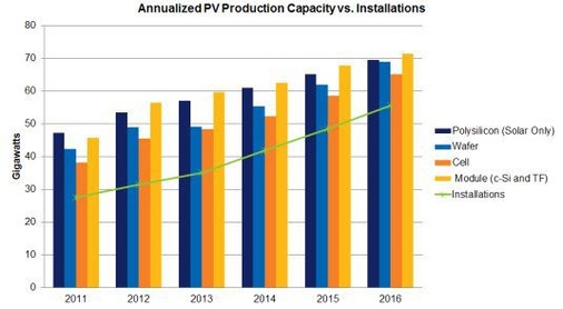 Finlay Colville, Vizepräsident bei Solarbuzz rechnet damit, dass sich die Überkapazitäten zwar sukzessive zurückgehen, die Situation noch bis 2015 für die Industrie angespannt bleibt und der hohe Preis- und Kostendruck anhalten wird. Auf magere Zeiten müssen sich vorerst auch die Maschinenbauer einstellen. Zwar rechnet Colville damit, das im Jahr 2013 der weltweite Equipment Markt wieder leicht anzieht, auf einen Umsatz von rund 4 Milliarden US-Dollar (2012: 2,5 Mrd. US-Dollar). Doch ist liegt dies weit unterhalb dem Rekordabsatz von 2011, als weltweit Photovoltaik-Maschinen und Ausrüstung für gut 13 Milliarden US-Dollar abgesetzt wurden.
