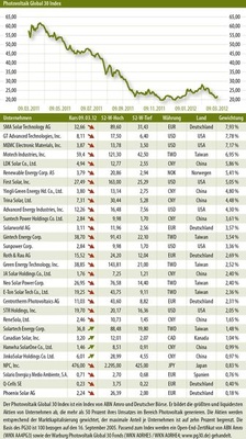 Bei First Solar (-37,39 Prozent) fielen die Verluste in diesem Monat besonders herb aus. Der US-Dünnschichtproduzent hatte im vergangenen Quartal überraschend einen Verlust ausgewiesen und seinen Umsatzausblick für das laufende Gesamtjahr 2012 gesenkt. Zu den Gegenmaßnahmen gehören sowohl Kurzarbeit als auch der Stopp des Produktionsausbaus. Unter Verlusten leiden jedoch nicht nur Modulproduzenten. Der deutsche Projektierer Phoenix Solar (-36,54 Prozent) konnte sich trotz positiver Unternehmensmeldungen über neue Auslandsgeschäfte nicht aus dem Abwärtssog befreien. Weil auch die Finanzierungen für Solarparks schwieriger geworden sind und weitere Abschreibungen auf Lagerbestände drohen, raten viele Analysten von dem Papier ab. Und selbst Wechselrichter-Weltmarktführer SMA (-36,05 Prozent) fiel nach einer Gewinnwarnung in Ungnade. Eine wegen Subventionskürzungen geringere Nachfrage in einigen europäischen Kernmärkten, so die Meinung der Börsianer, könne nicht durch andere Märkte aufgefangen werden.