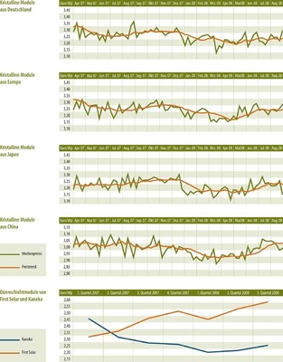 Die anhaltende Modulknappheit hat die Preise im Spotmarkt im Juli weiter ansteigen lassen. Markenmodule aus Japan und Europa verzeichneten im Juli eine leichte Steigerung gegenüber Mai-Juni. Die Ware aus Nippon erlitt jedoch im Laufe des Augusts wieder einen deutlichen Einbruch. Bei Modulen aus China sehen wir ine deutlichere Steigerung , da dies die einzigen Hersteller sind, die große Kontingente überhaupt noch anbieten können. In China ist jedoch zu unterscheiden zwischen etablierten Herstellern mit einer umfangreichen Vertiebsstruktur und Newcomern, die erst durch den Boom in diesem Jahr dazu gekommen sind.