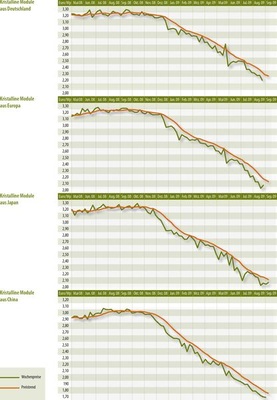 Favorit auf dem deutschen Markt bleibt First Solar. Im kristallinen Sektor sind überwiegend Module von Suntech Power, Yingli und Trinasolar aus China sowie Sharp aus Japan vermittelt worden. Hinzu kamen noch Sunpower aus den USA sowie Module von Schott aus Deutschland. Zurzeit verdächtigt die Branche in Europa und den USA die chinesischen Hersteller des Dumpings. Geringe Personalkosten und staatliche Förderungen schaffen in der Tat Wettbewerbsvorteile für die asiatischen Produzenten auf dem europäischen und US-Markt. Aktuell sind die Preise der chinesischen Hersteller fast 20 Prozent günstiger als die der europäischen Konkurrenten. Das Argument, die Modulqualität aus dem Reich der Mitte sei schlechter als die aus dem Westen, reicht nicht mehr, um die Vorteile der einheimischen Industrie zu verteidigen. Einige der großen chinesischen Hersteller sind qualitativ und technologisch ganz vorne dabei. Die monokristallinen Zellen von Suntech erreichen