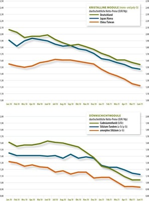 Zum ersten Mal wurden kristalline Module aus chinesischer Fertigung zu einem Preis unter einem Euro angeboten. Die Hersteller aus Fernost haben im Laufe des Jahres ihre Preise um 15 Prozent gesenkt. Und die Preise der Module von First Solar sind im selben Zeitraum noch stärker gesunken: um 16,6 Prozent.