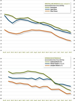Viele Modulhersteller können nicht so freudig ihre Quartalsergebnisse betrachten. Bei stagnierendem Umsatz erzielten die meisten Unternehmen in der Regel geringere Gewinne. Ursache für die schwache Umsatzentwicklung im vergangenen Quartal seien vor allem die schwache Nachfrage und die daraus resultierenden hohen Lagerbestände auf den verschiedenen Handelsstufen. Während in Deutschland durch die Kürzungen der Vergütung der vergangenen Monate die Nachfrage gebremst wurde, führten die überhöhten Einspeisetarife Italiens auch noch dazu, dass die Rohstoffpreise stiegen. Mit den zum 1. Juni 2011 in Italien neu eingeführten Einspeisevergütungen werden die Preise für Module, die dort verbaut werden, deutlich sinken müssen. Auf dem Spotmarkt war die in April in Italien verkaufte Ware immer noch zehn Prozent teurer als die, die in Deutschland abgesetzt wurden.