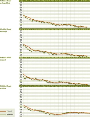 Italien gilt als der wichtigste Absatzmarkt für die erste Hälfte des Jahres 2011. Die attraktive Einspeisevergütung wird eine rapide Preissenkung bremsen, die sich vermutlich erst kurz vor dem Sommer bemerkbar machen wird. Die USA mit einem voraussichtlichen Zubau von zwei Gigawatt im Jahr 2011 tauchen in allen Prognosen als der größte Überseemarkt auf.