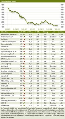 Die sich in mehreren Ländern verschlechternden Förderbedingungen für die Photovoltaik belasten nicht nur die Geschäfte der internationalen Solarbranche, sondern auch ihr Ansehen auf dem Börsenparkett. Am Stichtag 10. Mai lag der Photovoltaik Global 30 nur noch bei 17,54 Punkten und damit 6,6 Prozent unter dem ohnehin schon schlechten Wert des Vormonats – erneut ein Allzeittief. 21 der 30 Unternehmen im Branchenkorb verzeichneten fallende Kurse.