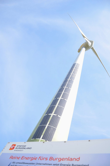 Einen Hybridgenerator der besonderen Art haben DAS Energy und Energie Burgenland realisiert. Der Modulhersteller aus der Wiener Neustadt hat 30 seiner flexiblen Leichtbaupaneele an den Turm einer Windkraftanlage im Windpark Weiden am See befestigen lassen. „Mit dem zusätzlich produzierten Ökostrom aus der Photovoltaikanlage wird die Effizienz erhöht und der ökologische Fußabdruck der Windkraftanlage weiter verbessert“, erläutert Alois Ecker, Vorstandsdirektor von Energie Burgenland.