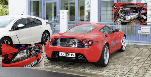 Seit zehn Jahren entwickelt das Fraunhofer IISB aus Erlangen Komponenten für elektrische Fahrzeuge. Nun haben die Forscher einen kompletten Elektroflitzer vorgestellt. Der IISB-One hat zwei unabhängige Radantriebe und ein Batteriesystem mit 355 Volt Spannung. Das Fahrzeug basiert auf einem Chassis der früheren Firma Artega. Das System zeichnet sich durch zwei mechanisch unabhängige Einzelradantriebe mit einem integrierten Doppelumrichter aus. Damit ist eine freie Drehmomentverteilung auf beide Antriebsräder der Achse möglich. Insgesamt stehen pro Rad eine Antriebsleistung von 80 Kilowatt sowie ein Drehmoment von bis zu 2.000 Newtonmetern bereit. www.iisb.fraunhofer.de