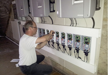 Besser als Trennschalter unterm Dach sind beispielsweise automatische Brandabschaltungen per Kurzschluss oder Trennschalter direkt am Wechselrichter (siehe Foto). Allerdings führen die Strings bei einfachen Trennschaltern trotz der Abschaltung in der Regel noch immer hohe Spannungen. Bei Kurzschlusssystemen ist der String hingegen faktisch frei von Spannung und Leistung.