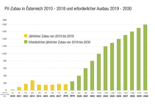 In Österreich gingen 2018 Anlagen mit einer Leistung von 168,7 Megawatt neu ans Netz. Im Jahr zuvor hatten die Handwerker insgesamt 173 Megawatt installiert. Das ist ein Marktrückgang von drei Prozent, nach einem Plus von elf Prozent im Jahr 2017. Um bis 2030 die Stromversorgung in der Alpenrepublik auf erneuerbare Energien umzustellen, wären 2018 mindestens 200 Megawatt notwendig gewesen. PV Austria führt den Marktrückgang vor allem auf die gekürzten Fördermittel für Kleinanlagen zurück.