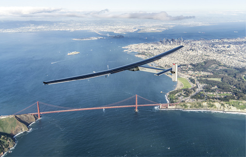 Der Sonnenflieger Solar Impulse 2 ist nach drei Tagen Flug sicher im kalifornischen Mountain View gelandet. Damit wurde der Pazifik erfolgreich überquert. Die letzte Etappe von Hawaii nach Kalifornien war rund 4.300 Kilometer lang. Bertrand Piccard steuerte den Flieger auf dieser Etappe. Im vergangenen Jahr hatte Pilot André Borschberg den Pazifik in fünf Tagen und Nächten überquert und damit einen Rekord aufgestellt. Die Solar Impulse 2 hat zwar eine ähnliche Spannweite wie ein Jumbojet. Dabei wiegt sie jedoch lediglich etwa so viel wie ein Kleinwagen und erreicht eine Geschwindigkeit von gut 65 Kilometer pro Stunde. Das macht sie anfällig für Wetterturbulenzen. Passendes Wetter ist damit Voraussetzung für das Gelingen der Mission. www.solarimpulse.com