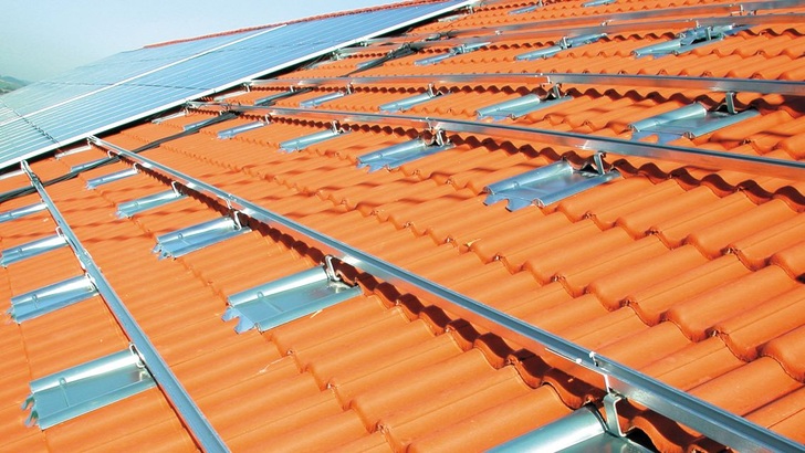 Das Grundgerüst der Solarmodule wird gewöhnlich an Dachhaken montiert. Bislang musste für die Befestigung dieser Haken ein Stück des zugehörigen Dachziegels herausgeflext werden. Die Metalldachplatte wird einfach anstelle eines normalen Dachziegels eingesetzt.