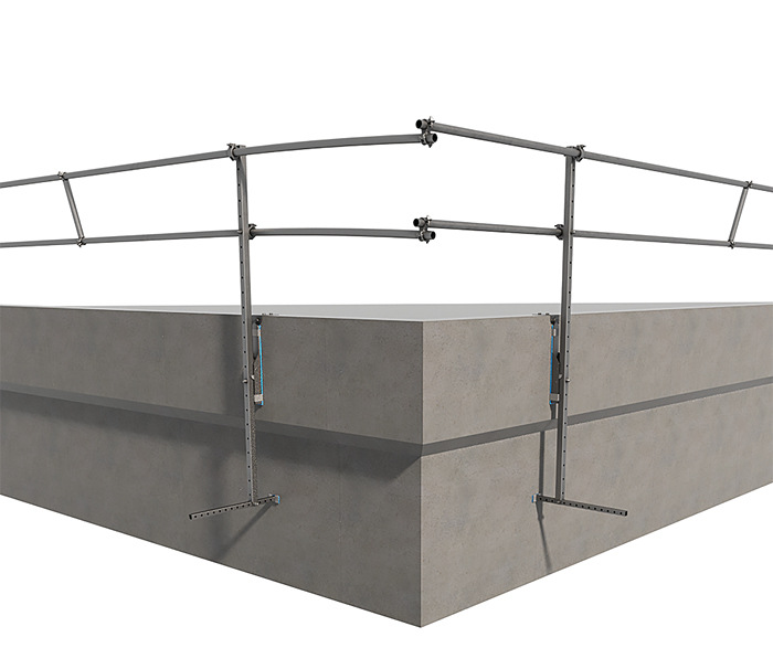 Während herkömmliche Absturzsicherungen für Flachdächer aus ballastierten Vorrichtungen mit Auflasten aus Beton oder Stahl bestehen und in L-Form in die Dachfläche hineinragen, wird die Halteplatte des Sifatec-Systems am Dachrand fixiert. Über eine Schwenkbewegung werden die Gerüstteile anschließend montiert und nach Abschluss der Bauarbeiten wieder gelöst.