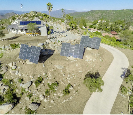 Drei Degertracker D60H mit 22 Kilowatt Solarfläche versorgen das Gebäude mit der benötigten Energie. Rund 44.000 Kilowattstunden können die Betreiber im Jahr ernten. Zusätzlich unterstützt eine 3,2 Kilowatt starke Windturbine die Stromversorgung des Anwesens. Durch die Kombination von Sonne und Wind wird das Haus täglich zwölf Stunden mit eigenem Ökostrom versorgt. Nicht direkt verbrauchte Energie wird in einer Batterie (40 Kilowattstunden) gespeichert.