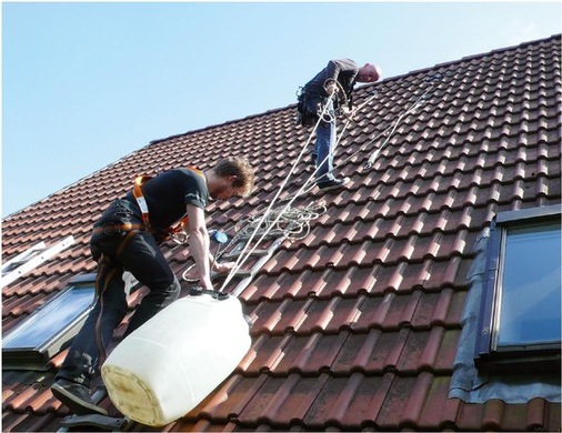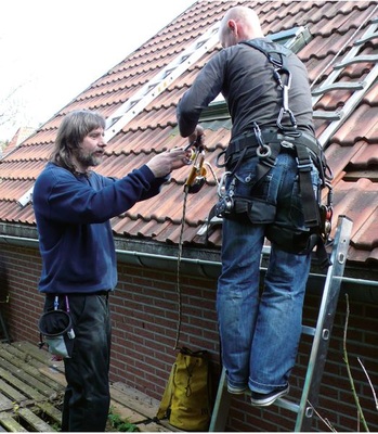 „Mit den rechtlichen und technischen Pflichten und Voraussetzungen muss natürlich jeder Solarteur vertraut sein“, mahnt auch Knappik. Er hat für die Seminarteilnehmer der AS-Solar-Akademie dazu umfangreiches Material zusammengestellt. Für mindestens ebenso wichtig hält er allerdings, dass jeder Solarteur auch praktisch genau weiß, was er – parallel zur Installation der Anlage – auf dem Dach tut. Einfach so darf nämlich niemand mit Gurt und Seil auf den Ziegeln herumkrabbeln: Vorher ist eine kompetente Einweisung in die Ausrüstung Pflicht. Und auch wenn eine PSAgA immer besser ist als gar keine Sicherung: Sie ist keineswegs erste Wahl. Die Betriebssicherheitsverordnung beispielsweise schreibt vor, Arbeitsmittel auszuwählen, die am geeignetsten sind,während der Benutzung auf Dauer sichere Arbeitsbedingungen zu gewährleisten. Das bedeutet: Gerüst statt Leiter, Brüstungen oder Fangnetze statt Anseilschutz. Eine PSAgA darf als alleinige Sicherung nur dann verwendet werden, wenn die Erstellung eines Gerüstes oder Fangnetzes länger dauert als die durchzuführenden Arbeiten oder wenn beides aus technischen Gründen nicht möglich ist. Und: Wenn ein Anseilschutz eingesetzt wird, muss auch klar sein, wie die Person im Falle eines Absturzes innerhalb von maximal 20 Minuten wieder sicheren Boden erreicht; die Rettungsausrüstung dafür muss bereitstehen.
