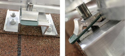 Die Klemmen haben die Holländer ebenfalls neu entwickelt. Der Handwerker kann sie jetzt gleichzeitig als Mittel- und als Endklemme nutzen. So muss er nicht mehr zwei verschiedene Klemmenvarianten mit aufs Dach nehmen. Sie funktionieren mit Modulen mit einer Rahmenhöhe zwischen 30 und 50 Millimetern, sind also für die gängigen Module geeignet, was die Lagerhaltung beim Installateur weiter vereinfacht.