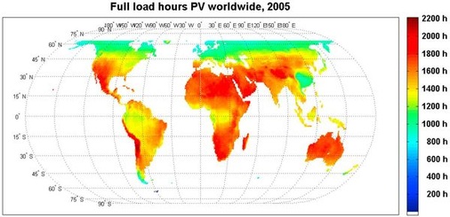Das waren ungefähr 400 Gigabyte Inputdaten. Die Forscherhirne und Computer glühten, um herauszufinden, ob sich Windkraft und Photovoltaik in die Quere kommen. „Zu unserem Erstaunen stehen Photovoltaik und Windkraft nirgends auf der Welt in Konkurrenz“, resümiert Breyer. „Um die Konkurrenzsituation und die Netzüberlastung zu ermitteln, haben wir die Stunden berechnet, in denen sich die Leistung aus beiden Technologien überschneidet.“ Im Modell haben Windpark und Solarpark jeweils die gleiche Leistung von einem Gigawatt, sind also symmetrisch. „Weltweit haben solche Kraftwerke zwischen drei- und fünftausend Volllaststunden, in Mitteldeutschland sind es etwa 3.300 Stunden“, nennt Breyer die Ergebnisse. „Davon entfallen etwa eintausend Stunden auf die Photovoltaik und zwei- bis dreitausend Stunden auf die Windkraft.“