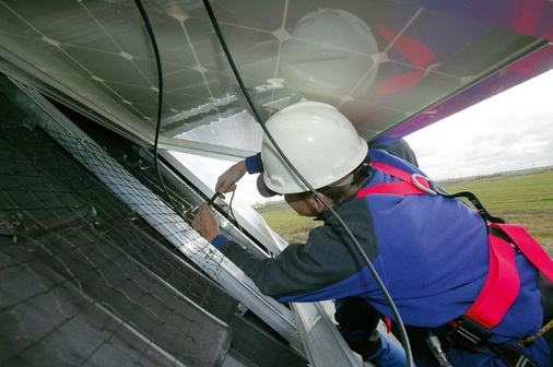 Egal, wie das Dach beschaffen ist: Jeder Monteur sollte eine persönliche Schutzausrüstung tragen. Vorgeschrieben ist sie nur, wenn die oben genannten Maßnahmen länger dauern als die Arbeit auf dem Dach oder bauliche Schwierigkeiten gegen ein Fanggerüst sprechen. Haltegurte und Seilschaft sollten in ihrer Anwendung professionell trainiert werden, ebenso die Rettung Verunglückter nach einem Absturz. Wer bewusstlos in den Seilen hängt, dem droht ein so genannter orthostatischer Schock. Der Kreislauf bricht zusammen, binnen weniger Minuten kann der Tod eintreten. Soll heißen: Auch die Verwendung der persönlichen Absturzsicherung will geübt sein, auch dafür bedarf es einer detaillierten Unterweisung.
