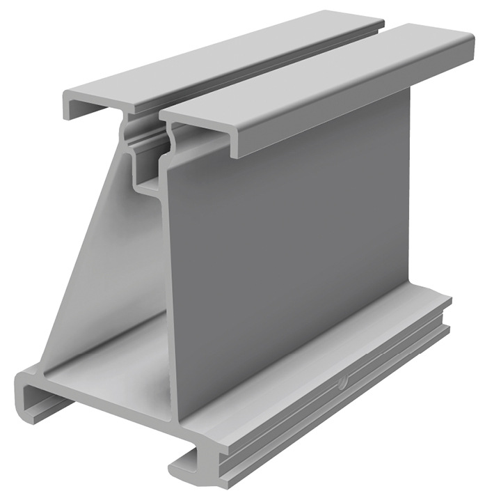 Damit diese Pfetten bei der Montage von bifazialen Modulen die Rückseite nur minimal verschatten, hat SL Rack einen speziellen Modulhalter entwickelt. Dieser wird auf der Z-Pfette befestigt. Auf der Oberseite hat er einen Kanal für die Modulklemmen.