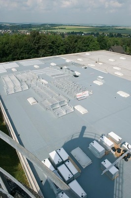 Die Kehrseite der Medaille: eine unklare Situation, was die Haftung für eventuelle Schäden an der Dachhaut betrifft. Denn rechtlich befindet sich der Anlagenplaner hier in einer Grauzone. Sowohl in den Vorschriften der Deutschen Industrienorm (DIN) als auch in den Dachdeckerrichtlinien werden Solarinstallationen auf Flachdächern nicht explizit erwähnt. Die Montagegestelle werden dennoch direkt auf der empfindlichen Dachhaut abgestellt und können darauf verrutschen, wenn die Anlage nicht perfekt ausgelegt ist. In den beiden Regelwerken finden sich Hinweise darauf, dass solche Solarinstallationen gegen die Normen verstoßen können. So darf laut DIN 18195 der Abdichtung „keine Übertragung von Kräften parallel zur Abdichtungsebene zugewiesen werden, die sich schädigend auf sie auswirken können“. Auch wenn diese DIN nicht direkt auf Industriedächer anwendbar ist – sie gilt speziell für Bauwerksabdichtungen bei Verkehrsflächen wie Balkonen und Dachterrassen –, so scheint die Regelung dennoch berechtigt. Die Dachdeckerrichtlinien wiederum fordern für Aufbauten einen Mindestabstand zur Dachhaut von einem halben Meter. Dadurch soll gewährleistet werden, dass die Dachfolie für Wartungszwecke jederzeit zugänglich ist.