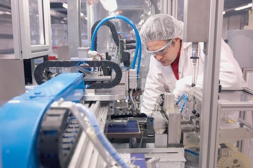 Andere Hersteller wie Solarworld setzen auf die so genannte Perc-Zelle. Im Herbst erregten die Freiberger Ingenieure gemeinsam mit Wissenschaftlern des holländischen Forschungsinstituts Imec einiges Aufsehen. Denn sie stellten erstmals eine Solarzelle mit sechs Zoll Kantenmaß vor, die nur noch 100 Mikrometer dick ist. Derzeitiger Standard in der Industrie sind 180 Mikrometer. Die Zellen waren in ein Modul mit 255 Watt Leistung eingebaut. Sie wurden nicht etwa in mühevoller Kleinarbeit im Labor prozessiert, sondern sie stammten aus der vollautomatischen Fertigung im sächsischen Freiberg.