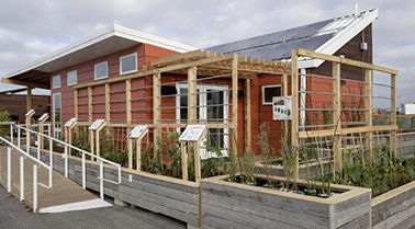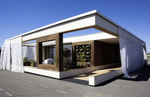 Das ist der Gewinner: Das „Lisi“ aus Österreich. Das Gebäude besteht zu 90 Prozent aus Holz. Selbst die Wärmedämmung besteht aus Zellulose. Die Innenverkleidung ist Baumrinde. „Holz hat sehr gute thermische Eigenschaften“, sagt Karin Stieldorf, Projektleiterin des österreichischen Teams. „Und vor allem ist es ein nachwachsender Rohstoff mit einer ausgezeichneten Umweltbilanz.“ Aber auch das Energiekonzept ist auf eine gute Energiebilanz zugeschnitten. Dabei wird gemessen, ob das Haus mindestens so viel Strom produziert, wie es verbraucht. Außerdem gehört zum Konzept eine Ressourcen schonende Warmwasserbereitung. Dabei wird beurteilt, ob das Haus den gesamten Verbrauch an Warmwasser bereitstellen kann. In beiden Disziplinen konnten die Österreicher die höchste Punktzahl von allen Teilnehmern holen. Seine gesamte Energie bezieht das Gebäude aus einer Photovoltaikanlage mit einer Leistung von 8,6 Kilowatt. Sie besteht aus zwei Systemen. Ein Teil umfasst Kioto-Module und Fronius-Wechselrichter, der andere Lotus-G2-Module mit integrierten DC-DC-Wandlern von Holleis. Die Solarstromanlage ist auf dem Dach aufgeständert und stellt mehr Energie zur Verfügung, als das Haus braucht – sowohl in Kalifornien als auch in Österreich. Der Überschuss fließt ins Netz.