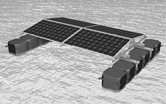 K2 Systems hat ein neues System für schwimmende Photovoltaikanlagen entwickelt. Es basiert auf Pontons aus Kunststoff, die miteinander verbunden werden. Auf diese wird dann das bewährte D-Dome-Montagegestell von K2 Systems installiert und die Solarmodule darauf in Ost-West-Ausrichtung aufgeständert. So entstehen Kraftwerkseinheiten mit insgesamt 280 Modulen. Fünf Reihen mit jeweils 56 Modulen werden dazu zusammengehängt. Jede Kraftwerkseinheit ist an mindestens vier Stellen entweder am Grund, am Ufer oder an der Einfassung des Gewässers verankert.