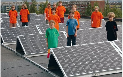 Die Besichtigung der Güstener Anlage gab für Alexander Marthaus den Ausschlag, im Frühjahr dieses Jahres auf dem Dach der Laborschule in Dresden ebenfalls Scirocco als Befestigungssystem einzusetzen. Auch hier unter der Vorgabe: keine Dachdurchdringung, wenig zusätzlicher Ballast. Da die Dresdner Anlage von Schülern und Lehrern zu Unterrichtszwecken genutzt wird, freut sich Marthaus über das innovative Montagesystem. „Ich finde das System toll, weil der Aufbau völlig unkompliziert ist und das Dach heil bleibt“, sagt der Anlagenbetreiber. „HB-Solar garantiert für die ,Standhaftigkeit‘ und unser Versicherer hat auch kein Problem mit der Anlage.“ Mit einem Neigungswinkel von 30 Grad bietet Scirocco einen optimalen Neigungswinkel für kristalline Module.