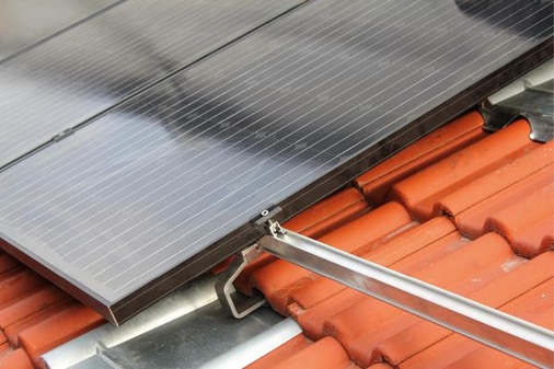 Die Stoppuhr zeigt 12:51, als das erste Modul auf dem Schrägdach montiert ist. Nun können die gut durchdachten Modulklemmen ihren Zeitvorteil ausspielen. „Man klickt die Klemme einfach nur in die Profilschiene rein, zieht sie dann fest und hat so die Möglichkeit, sie später wieder sauber zu demontieren“, erklärt Sand. Modul um Modul kommt jetzt hinzu. Schnell wächst die Anlage.
