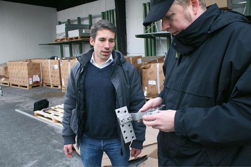 Wieder stehen zwei Monteure am Start. Zunächst ist aber noch ein bisschen Zeit, das Montagesystem etwas genauer unter die Lupe zu nehmen. „Fällt Ihnen etwas Besonderes auf?“ Die Frage des photovoltaik -Redakteurs geht an den Gutachter Udo Siegfriedt. „Ich muss erst mal noch ein bisschen schauen.“ Schon prüft er die einzelnen Komponenten.