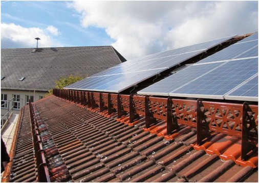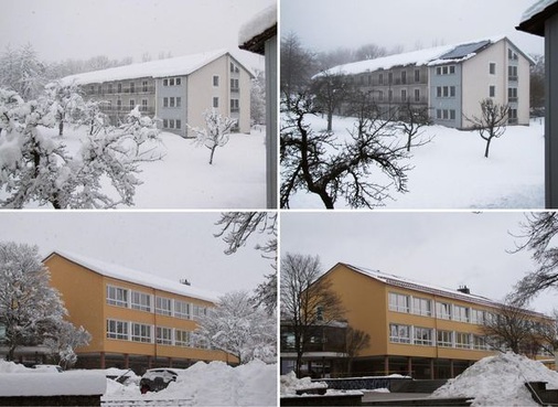 Bevor Michael Kitzlinger der Installation der Solarstromanlage auf dem Schuldach im letzten Jahr zustimmte, ordnete der Prüfstatiker deshalb den Bau eines zweireihigen Schneefanggitters an. Die obere Reihe soll den Schnee auf den Solarmodulen halten, so dass er möglichst gar nicht in Bewegung gerät. Die untere Reihe soll überschießende Schneelawinen abfangen. Dazwischen sahen die Planer einen anderthalb Meter breiten Stauraum für die Schneemassen vor, für den die Stadtwerke als Betreiber der Anlage auf die dritte Modulreihe verzichten mussten.
