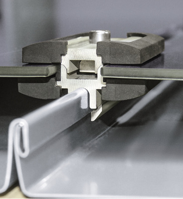 Eine an der Unterseite der Solarmodule angebrachte Anschlussdose stellt deren elektrischen Anschluss sicher. Insgesamt ergibt sich eine Montagehöhe von 40 Millimetern. Die Anordnung der Glasmodule befindet sich also nur geringfügig oberhalb der Stehfalze.