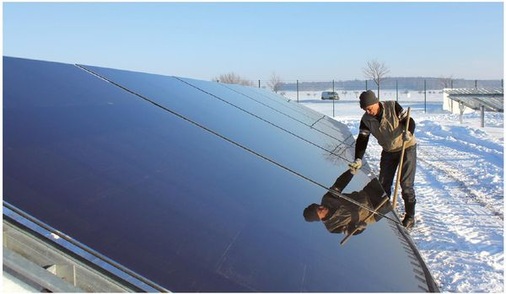 Die Eiseskälte lässt Mensch und Maschine erstarren. 20 Grad unter null waren es in der letzten Nacht. Damit hatte niemand gerechnet. Jetzt sind es immer noch minus zehn Grad, und die Monteure ringen mit den Folgen. Nach ein paar hüstelnden Motorgeräuschen am Morgen hat Robby kein Lebenszeichen mehr von sich gegeben. Dabei dreht sich hier in diesen Tagen fast alles um ihn – den Montageroboter von Gehrlicher Solar.