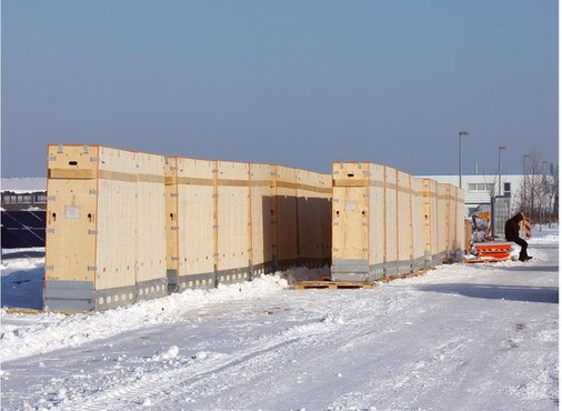 Lob hat Robby schon jetzt verdient. Anderthalb Wochen nach dem Start sind alle Großmodule montiert. Trotz Kälte, Schnee und Eis schaffte der Roboter im Schnitt 75 Module pro Tag, an seinem besten sogar 148 Module. Bis zum Frühsommer dieses Jahres wollen die Entwickler ihn auf 250 Module pro Tag trimmen.