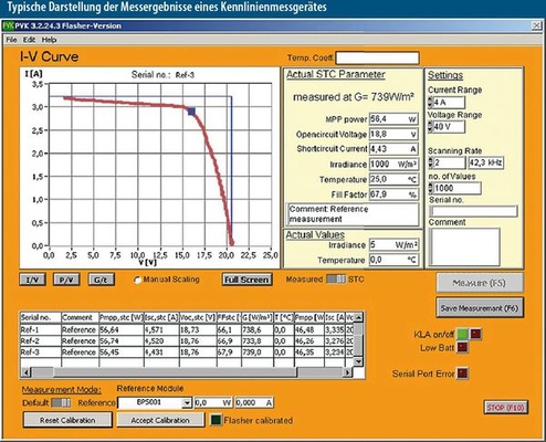 In die zweite Gruppe fallen die Geräte von PV-Engineering und der PV-KLA von Mencke & Tegtmeyer. Sie haben kein Display, so dass die Daten nur über einen Laptop oder einen PC eingesehen und ausgewertet werden können. PV-Engineering hatte eine ähnliche Motivation wie Dirk Tegtmeyer, das Gerät zu entwickeln. „Damals gab es Geräte, die waren eher für Physiker geeignet, aber nicht für den normalen Elektriker“, sagt Geschäftsführer Klaus Schulte. Mit rund zehn Kilogramm sind seine vier Geräte deutlich schwerer als die kleinen Handgeräte. Das Mehrgewicht bringt mehr Funktionen mit sich. Zwar werde bei seinem Gerät wie bei allen anderen ein Einstrahlungssensor mitgeliefert, doch der Anwender könne auch jeden beliebigen Sensor verwenden. Die Kosten für die Geräte von PV-Engineering liegen zwischen 5.000 und 7.000 Euro. Eingesetzt werden sie in erster Linie von Modulherstellern, Großhändlern, einigen wenigen Gutachtern und größeren Installationsbetrieben. Seit 2001 verkaufte die Firma nach eigenen Angaben zwischen 400 und 500 Stück weltweit.