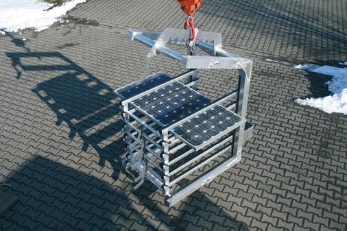 „Bei kleinen Anlagen bringen wir die Module über das Gerüst hoch“, berichtet Jörg Tappeser, Geschäftsführer von Solartechnik Tappeser in Schwerte, und kommt damit zu den gängigen Methoden. Auf jeder Lage des Gerüstssteht ein Monteur, der das Modul entgegennimmt und weiter hochhebt. „Das ist das Modulschonendste, was man machen kann“, meint Tappeser. Allerdings gehe es sehr auf die Ellenbogen. Hinzu kommt, dass jeder Arbeiter bei dieser Transportweise genau wissen muss, wie er die Module behandeln muss und was er nicht machen darf. Außerdem muss ein Gerüst vorhanden sein, was bei Baustellen, auf denen nur eine Photovoltaikanlage montiert werden soll, häufig nicht der Fall ist.